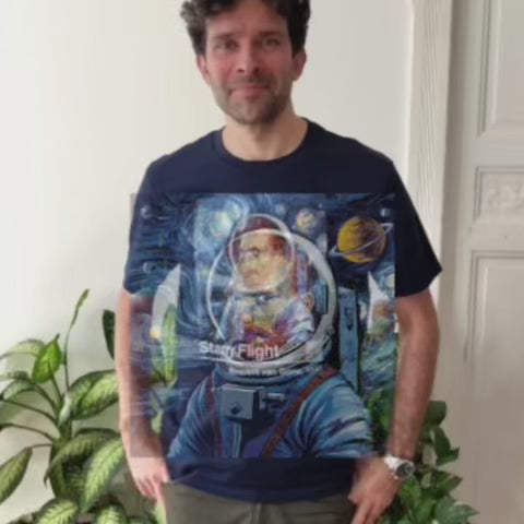 Van Gogh, the OG cosmic dreamer, traded his beret for a space helmet and he’s got that classic "I’ve-seen-too-much" expression... probably because - let’s be real, painting in zero gravity when your paint keeps floating away!? 🪐😳